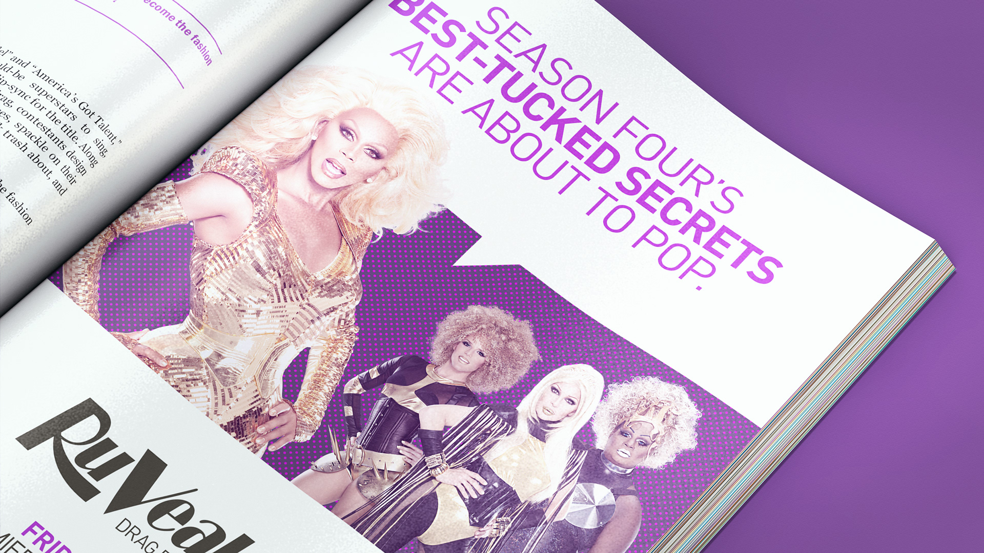 Ruvealed: Drag Race Season 4 is a Logo TV show that revisits past seasons of RuPaul’s Drag Race with colorful commentary and insider info from cultural icon, RuPaul. I helped design the logo and visual language used to promote this spinoff series.